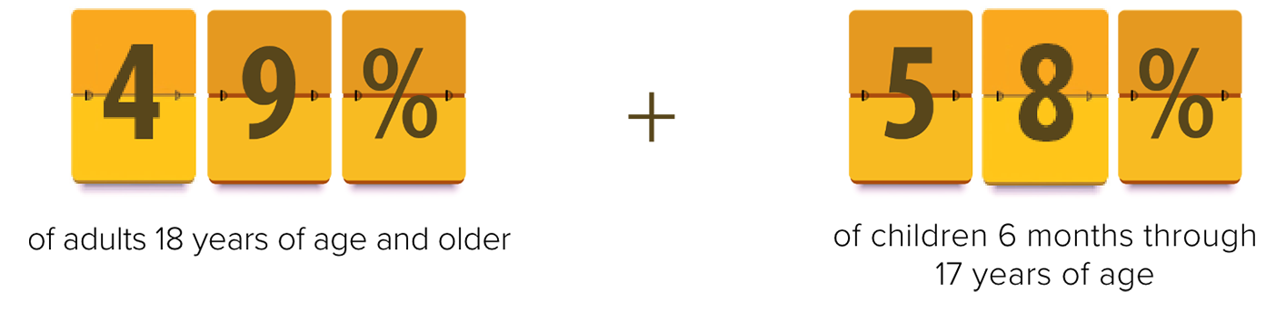 55 percent of children six months through 17 years of age received one or more doses of flu vaccine in 2023-2024